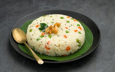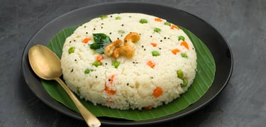 Comforting South Indian breakfast dish made from roasted semolina gently cooked with spices, curry leaves, and seasonal vegetables.