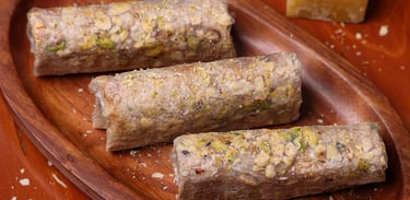 Traditional festive sweet from Andhra Pradesh, made with delicate paper-thin rice starch sheets, Desi Ghee, Jaggery powder and Dry fruits. Crisp, flaky, and melts-in-the-mouth